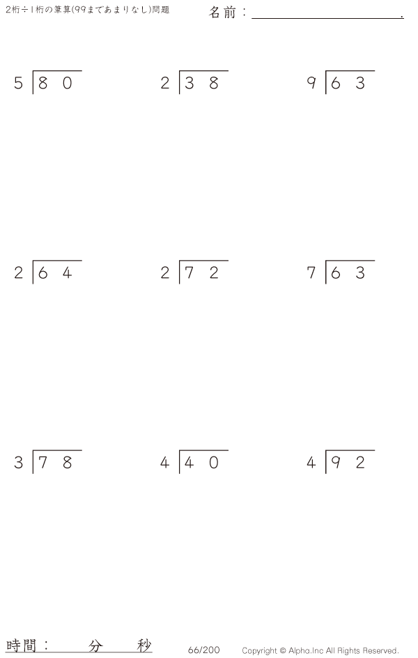 2桁÷1桁の筆算(あまりなし) [問題]066/350