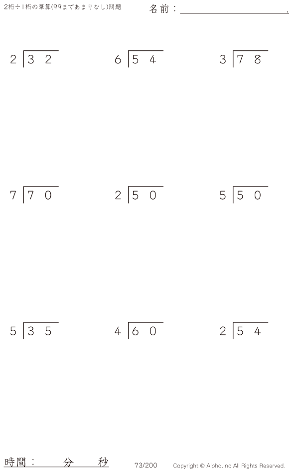 2桁÷1桁の筆算(あまりなし) [問題]073/350