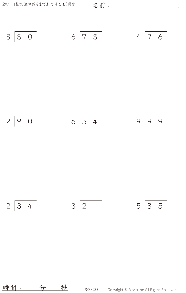 2桁÷1桁の筆算(あまりなし) [問題]078/350