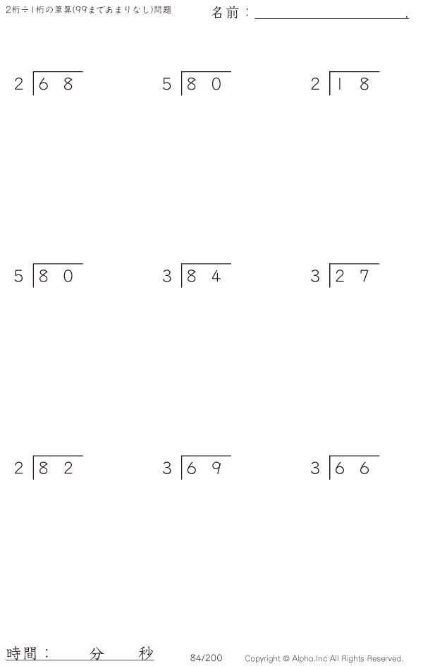 2桁÷1桁の筆算(あまりなし) [問題]084/350