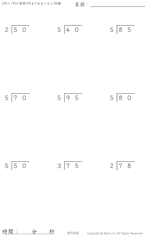 2桁÷1桁の筆算(あまりなし) [問題]087/350