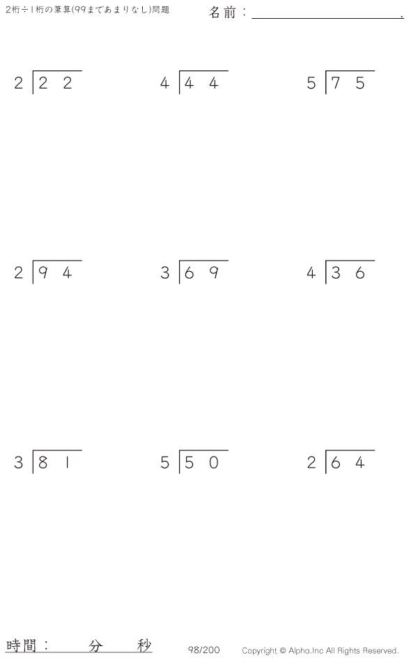 2桁÷1桁の筆算(あまりなし) [問題]098/350
