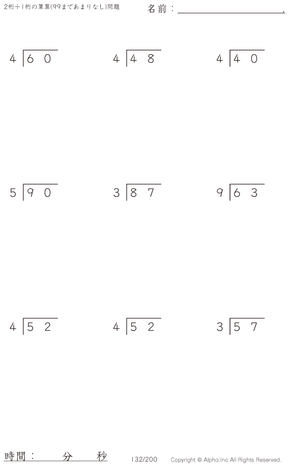 2桁÷1桁の筆算(あまりなし) [問題]132/350