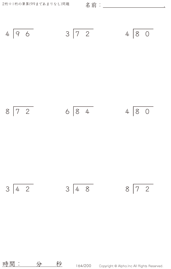 2桁÷1桁の筆算(あまりなし) [問題]164/350