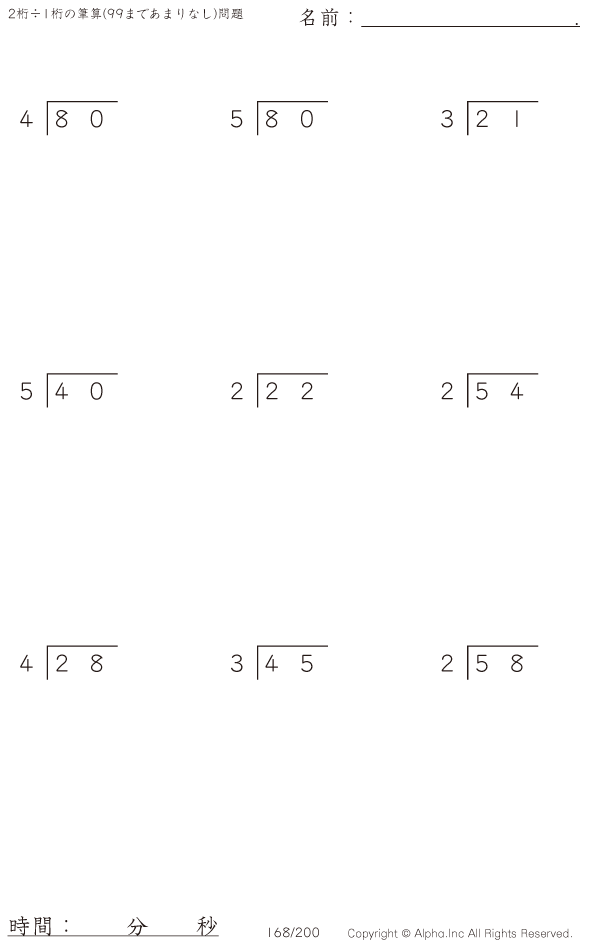 2桁÷1桁の筆算(あまりなし) [問題]168/350