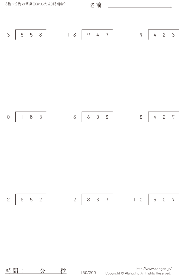 3桁÷2桁の筆算0(20までの数値で割る)@9 [問題]150/200