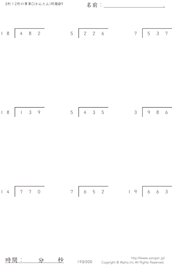 3桁÷2桁の筆算0(20までの数値で割る)@9 [問題]193/200