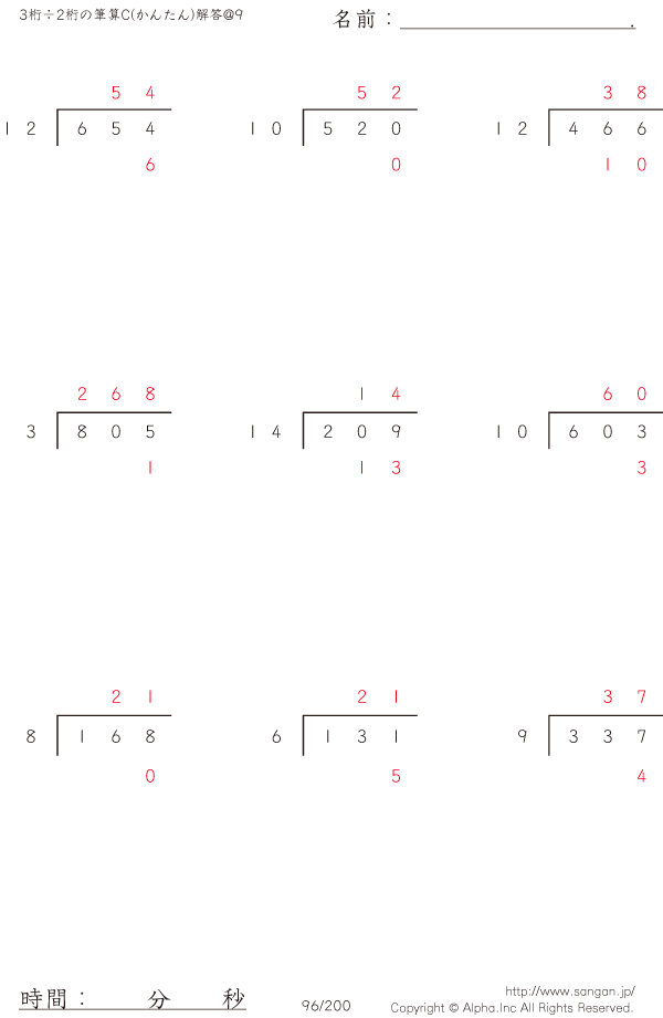 3桁÷2桁の筆算0(20までの数値で割る)@9 [解答]096/200