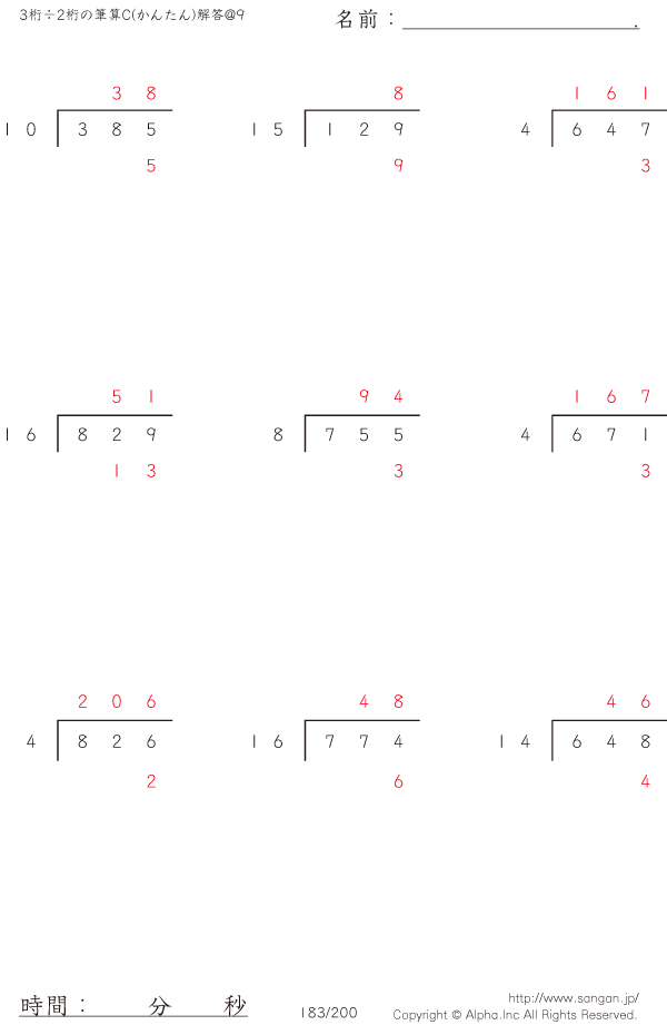 3桁÷2桁の筆算0(20までの数値で割る)@9 [解答]183/200