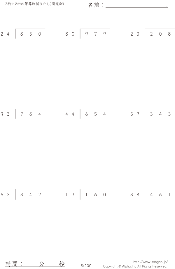 3桁÷2桁の筆算B(制限なし)@9 [問題]008/200
