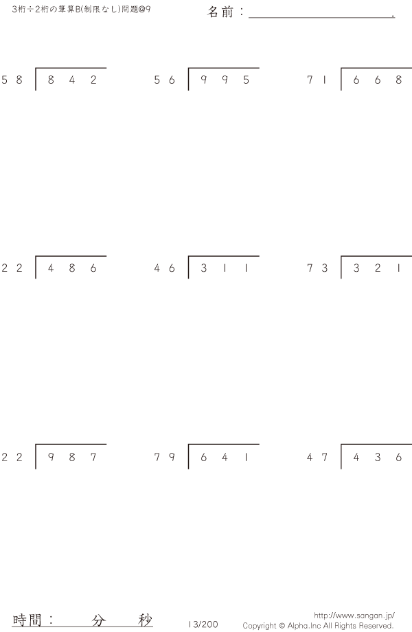 3桁÷2桁の筆算B(制限なし)@9 [問題]013/200