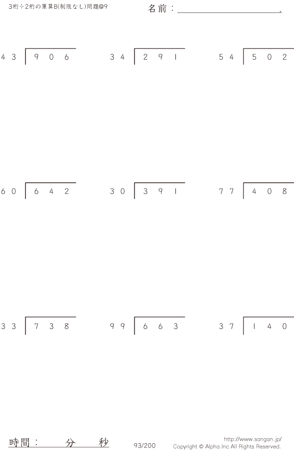 3桁÷2桁の筆算B(制限なし)@9 [問題]093/200