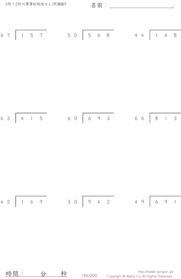 3桁÷2桁の筆算B(制限なし)@9 [問題]155/200
