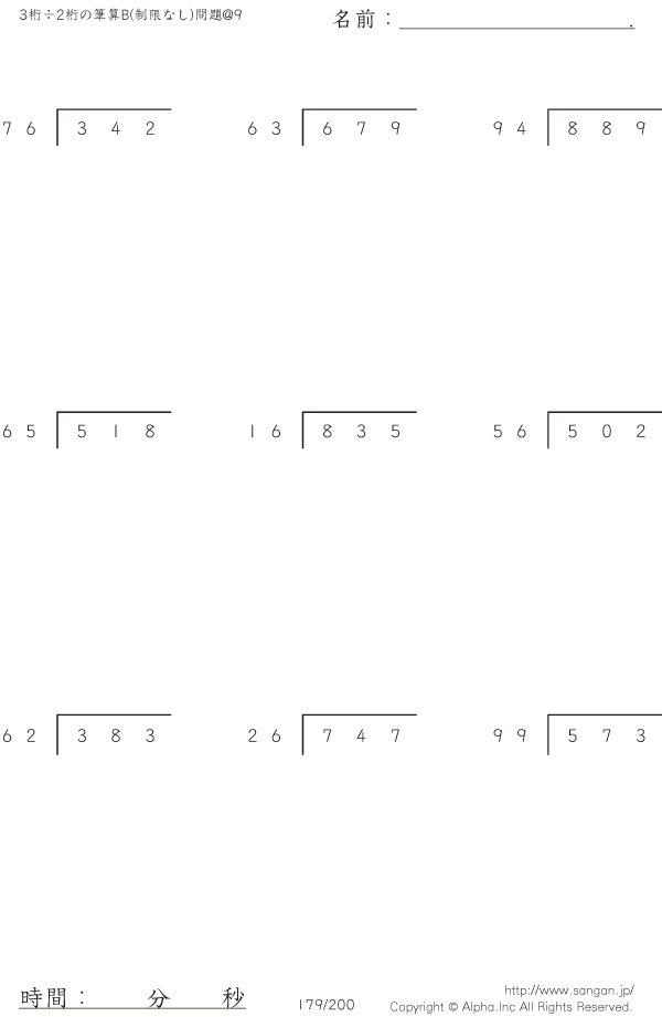 3桁÷2桁の筆算B(制限なし)@9 [問題]179/200
