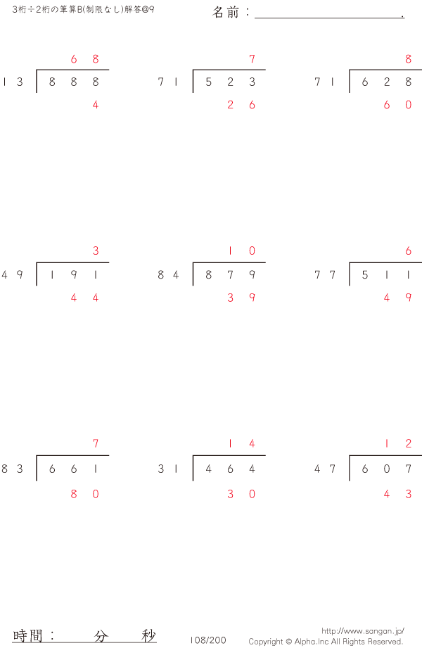 3桁÷2桁の筆算B(制限なし)@9 [解答]108/200