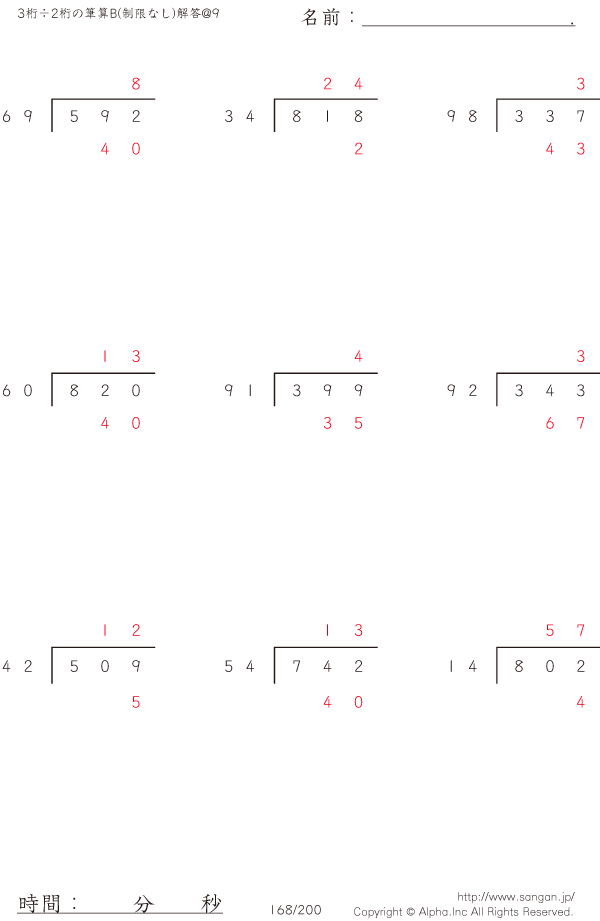 3桁÷2桁の筆算B(制限なし)@9 [解答]168/200