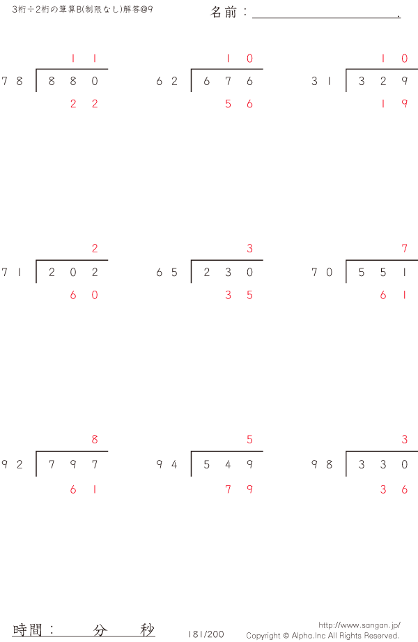 3桁÷2桁の筆算B(制限なし)@9 [解答]181/200