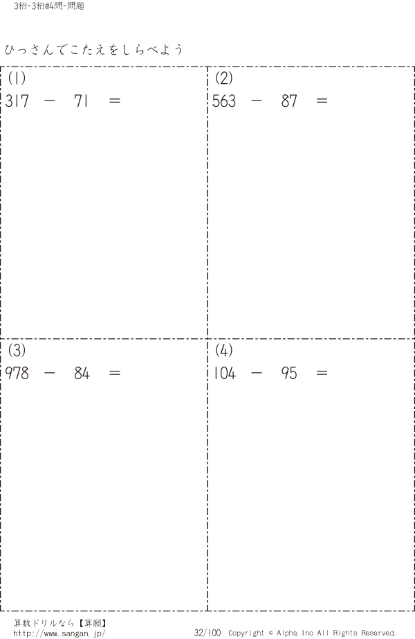 自分で3桁-3桁の筆算 [問題]032/100
