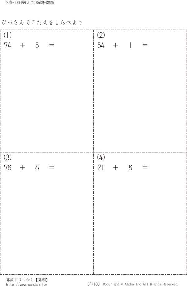 自分で2桁+1桁の筆算(99まで) [問題]034/100