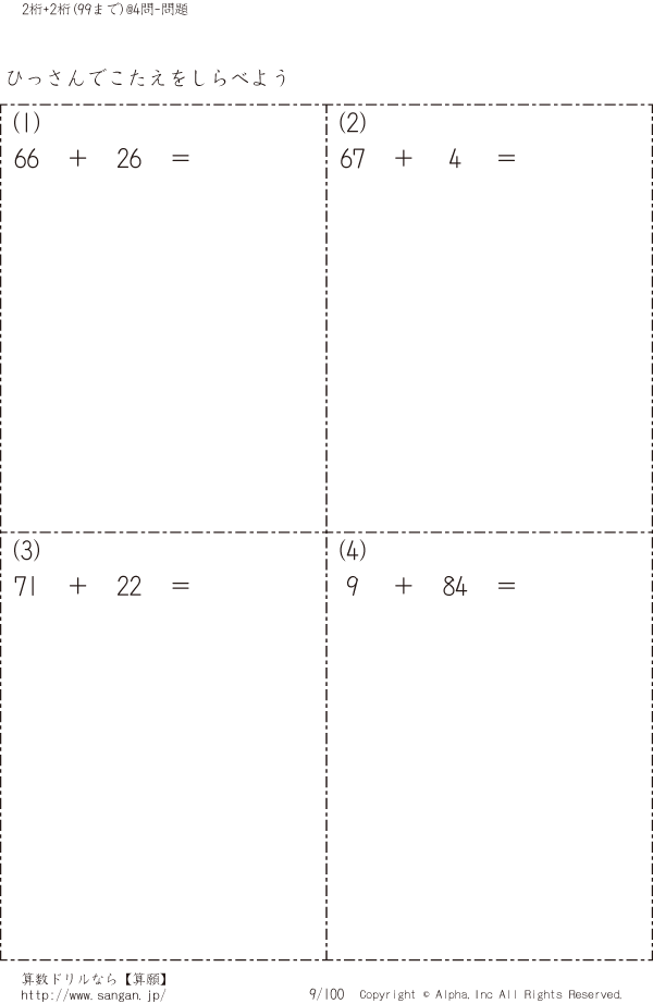 自分で2桁+2桁の筆算(99まで) [問題]009/100