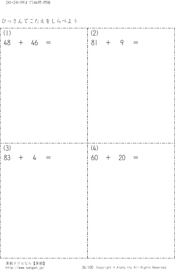 自分で2桁+2桁の筆算(99まで) [問題]036/100