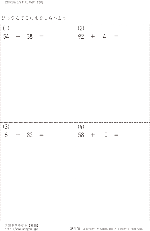 自分で2桁+2桁の筆算(99まで) [問題]038/100