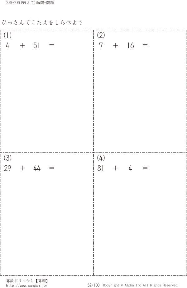 自分で2桁+2桁の筆算(99まで) [問題]052/100