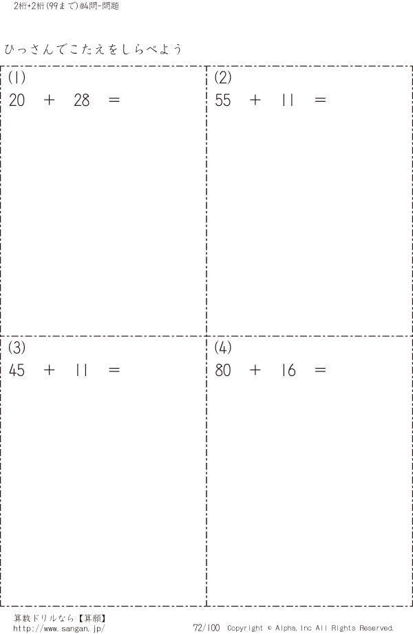 自分で2桁+2桁の筆算(99まで) [問題]072/100