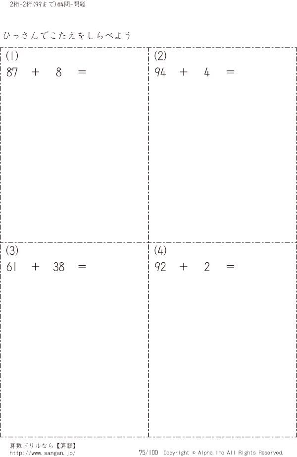 自分で2桁+2桁の筆算(99まで) [問題]075/100