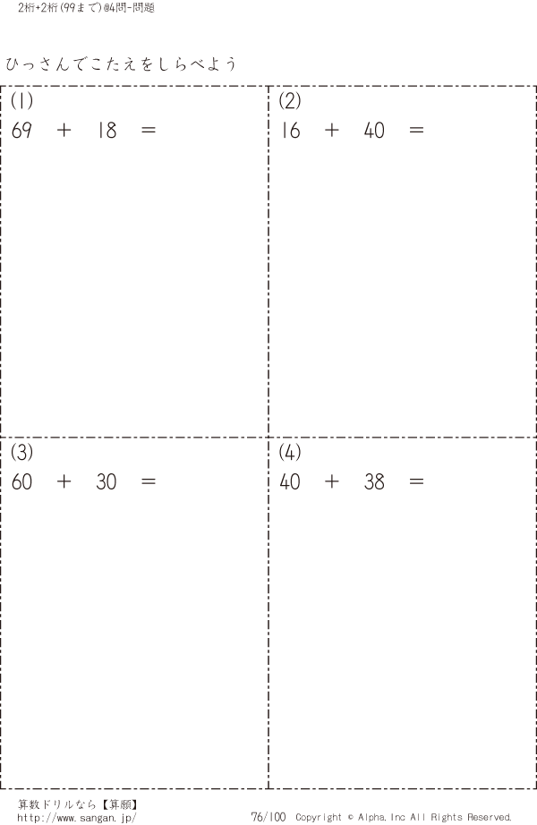 自分で2桁+2桁の筆算(99まで) [問題]076/100