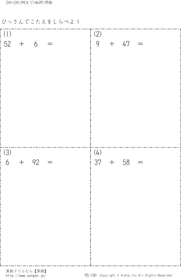 自分で2桁+2桁の筆算(99まで) [問題]095/100