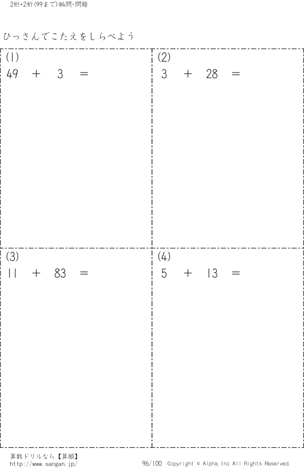 自分で2桁+2桁の筆算(99まで) [問題]096/100