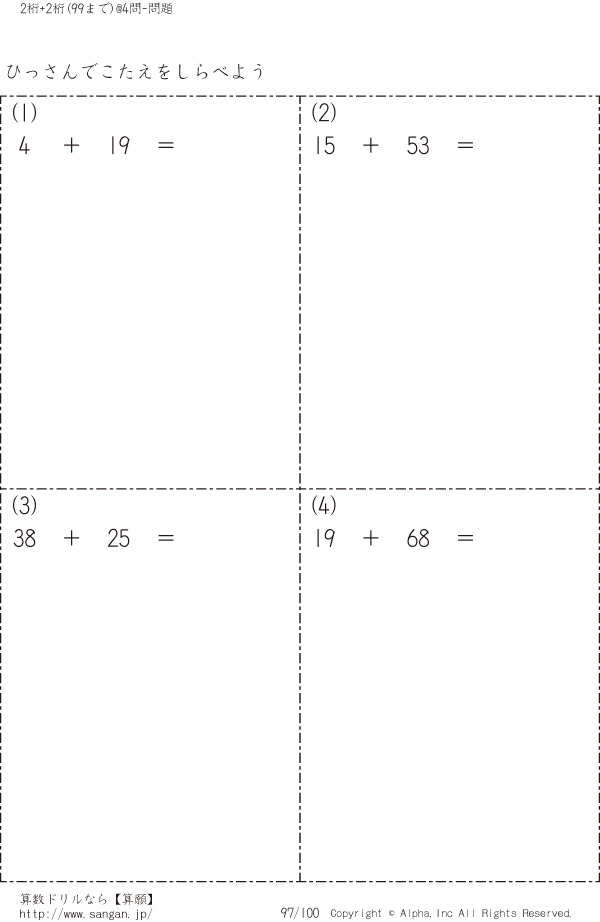 自分で2桁+2桁の筆算(99まで) [問題]097/100