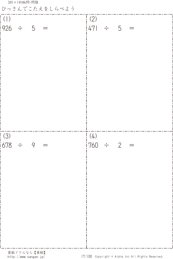 自分で3桁÷1桁の筆算 [問題]017/100
