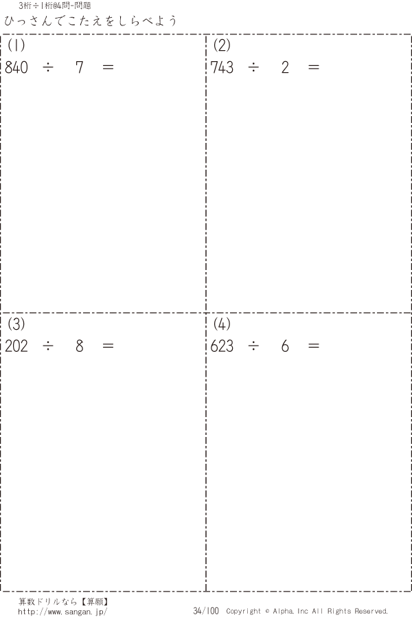 自分で3桁÷1桁の筆算 [問題]034/100