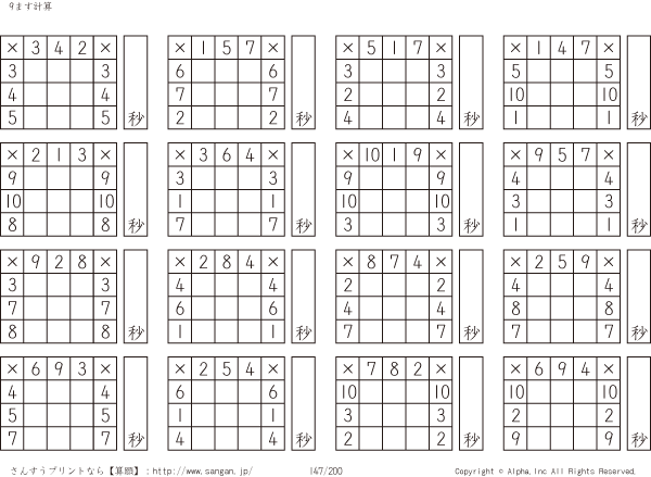 9ます掛け算(3マス×3マス) [問題]147/200