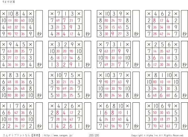 9ます掛け算(3マス×3マス) [解答]200/200