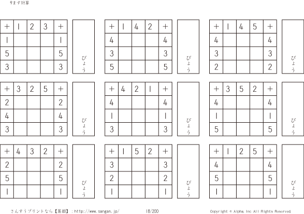 9ます足し算くりあがりなし(3マス×3マス) [問題]018/200