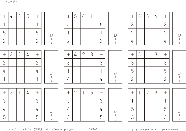 9ます足し算くりあがりなし(3マス×3マス) [問題]028/200