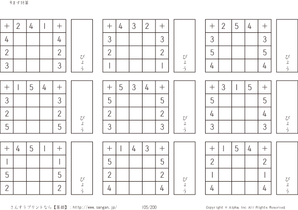 9ます足し算くりあがりなし(3マス×3マス) [問題]105/200