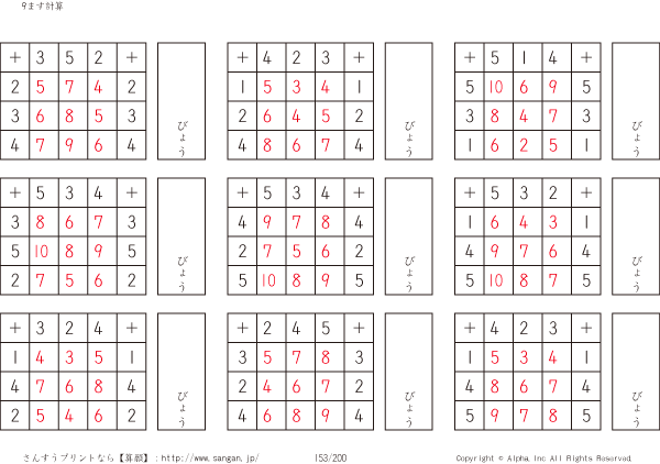 9ます足し算くりあがりなし(3マス×3マス) [解答]153/200
