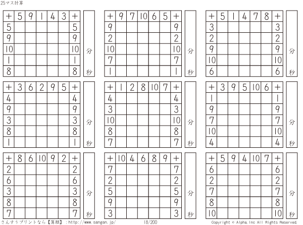 25ます足し算(5マス×5マス)の問題解答ガイド