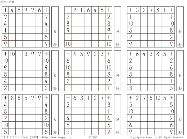 25ます足し算(5マス×5マス) [問題]027/200