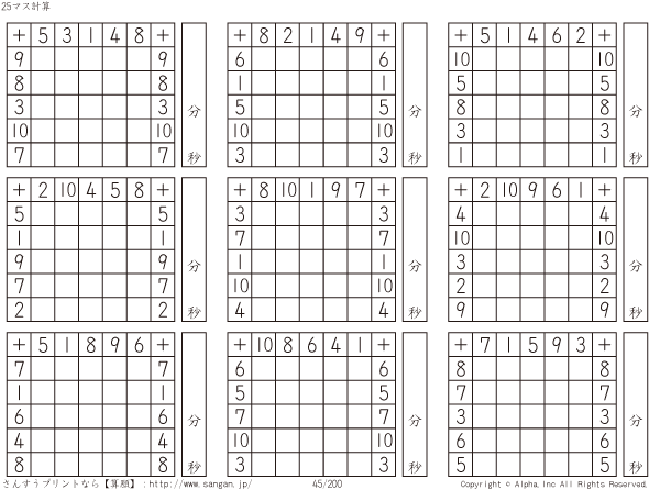 25ます足し算(5マス×5マス) [問題]045/200