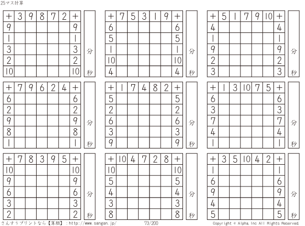25ます足し算(5マス×5マス)の問題解答ガイド