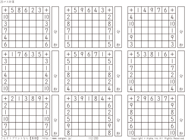 25ます足し算(5マス×5マス) [問題]112/200
