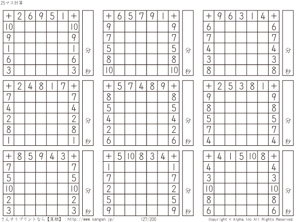 25ます足し算(5マス×5マス)の問題解答ガイド