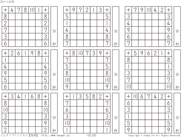 25ます足し算(5マス×5マス)の問題解答ガイド