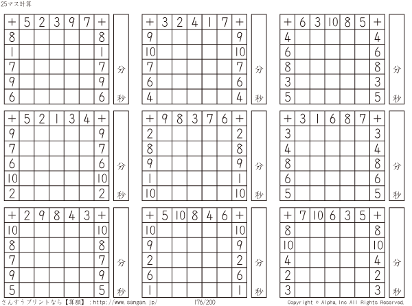 25ます足し算(5マス×5マス)の問題解答ガイド