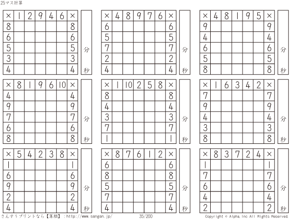25ます掛け算(5マス×5マス)の問題解答ガイド